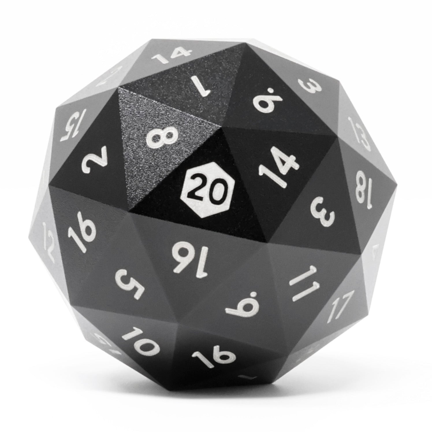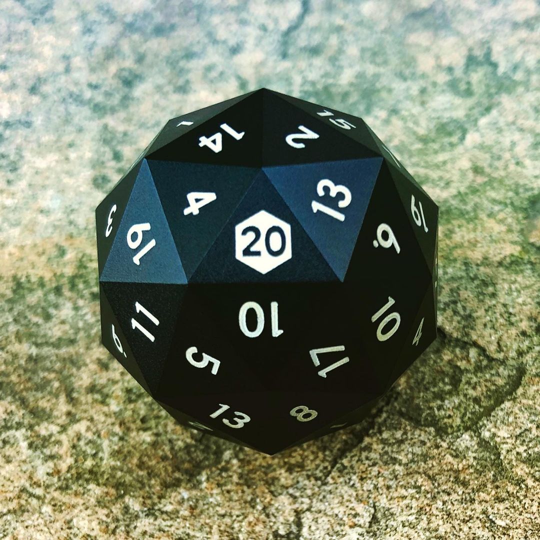 I invented the 60-sided d20 because I wanted a giant 60-sided metal die that I could use all the time! Works just like any d20: since each number 1-20 appears on three faces, every number has a 1 in 20 chance of being rolled (3/60 = 1/20). The Flying Horseduck 60-sided d20 is solid aluminum, cool to the touch, and rolls beautifully. This metal die is more satisfying to roll than other giant d20s and is sure to be your new favorite d20!