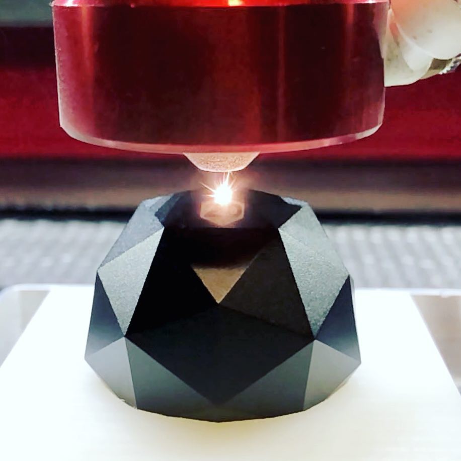 This 60-sided d20 is precision milled from solid aircraft grade 6061 aluminum, hard anodized and laser marked.