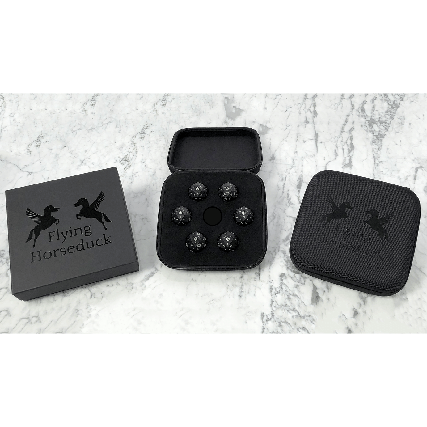 Includes a premium zippered case for a durable and luxurious home for all six of your new dice plus a spot left for a seventh die, your hero miniature, or whatever else fits!
