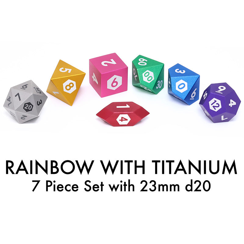 Preorder: Honest Dice 7 Piece Aluminum Dice Set w/ 23mm Titanium d20