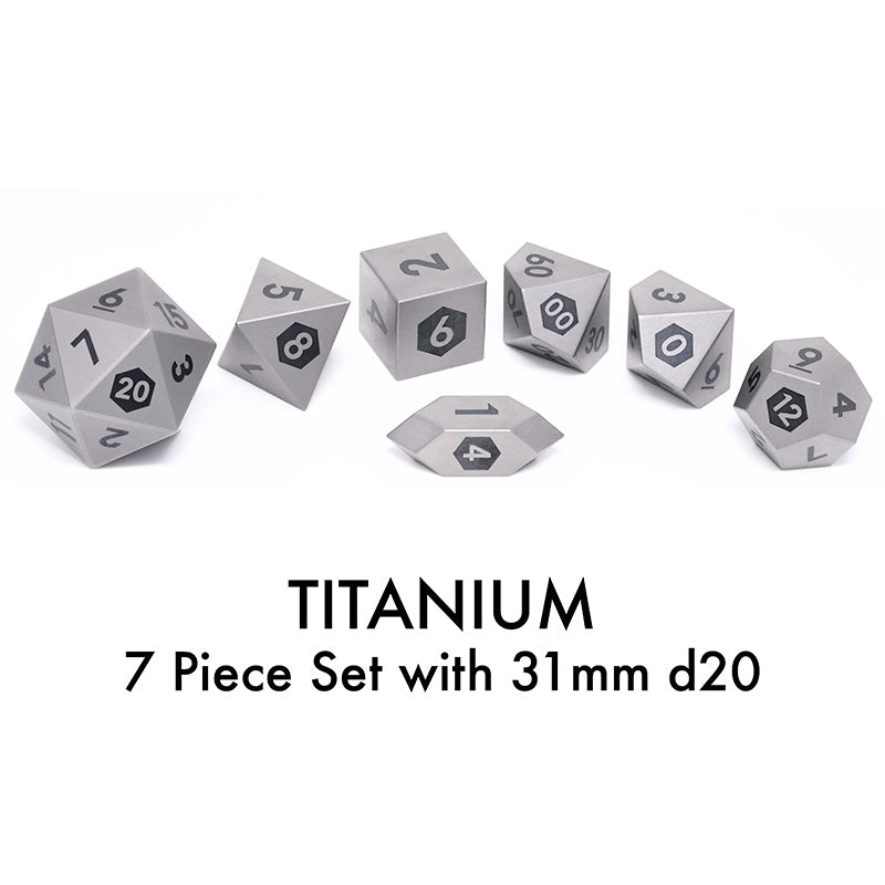 Preorder: Honest Dice 7 Piece Titanium Dice Set w/ 31mm d20