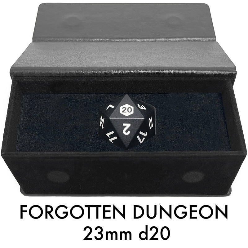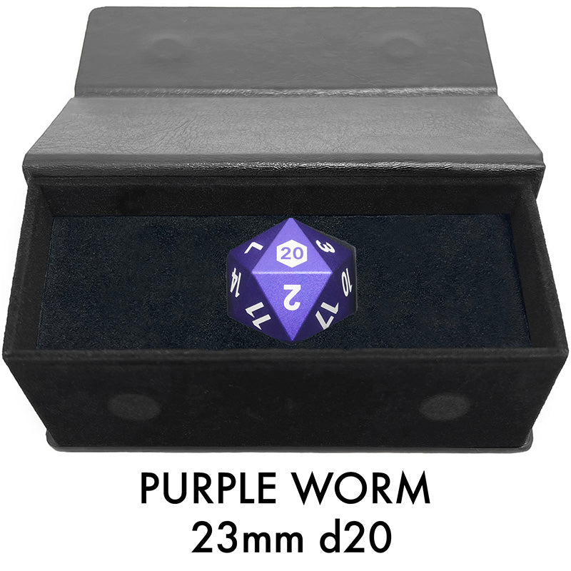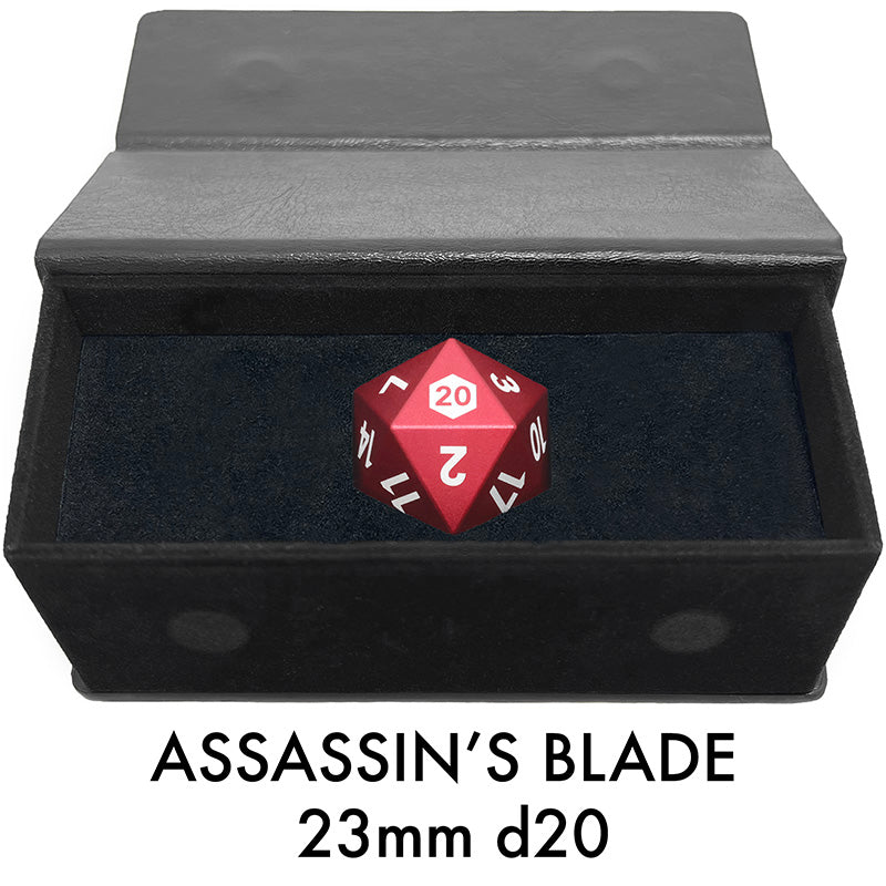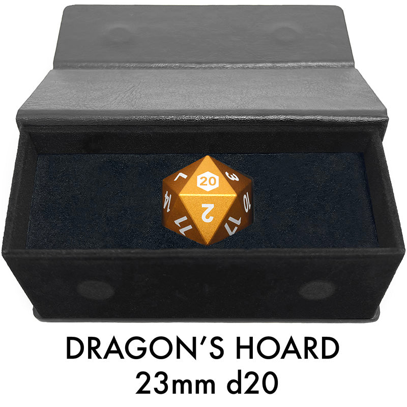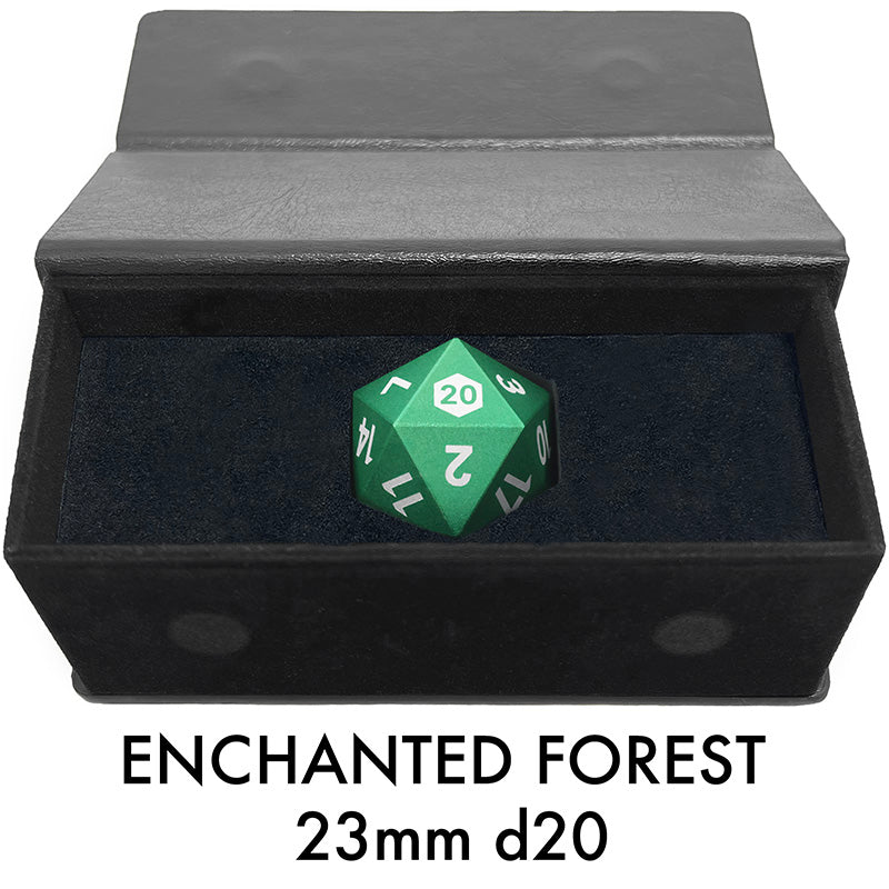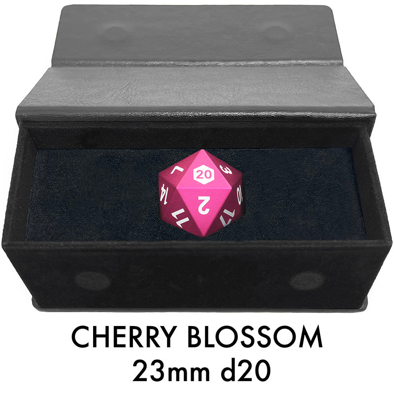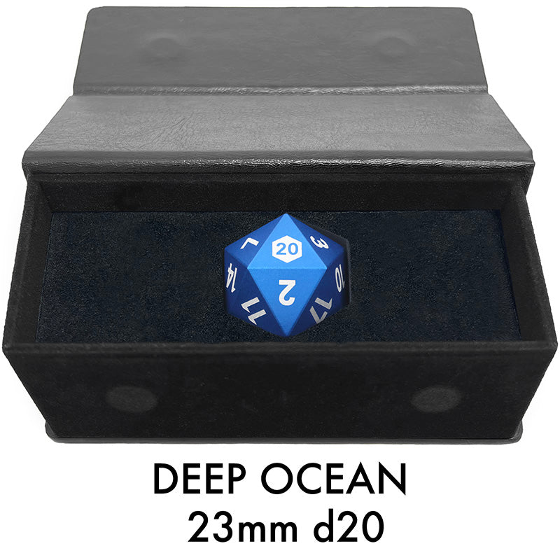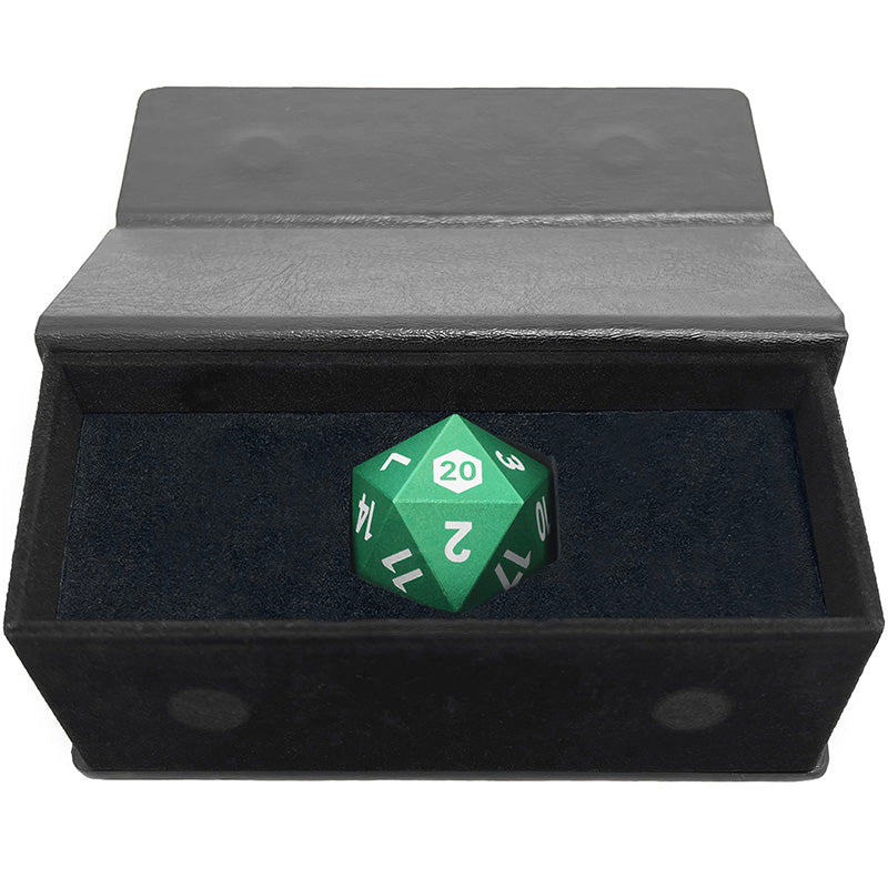 A 23mm d20 precisely milled by machinists using a 5-axis CNC. It features permanently laser marked numbers arranged in a mathematically balanced layout. Includes an elegant case for storage and display.